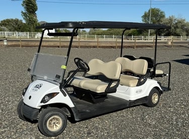 Travel in style with our Yamaha 6-seater golf cart rental, featuring upgraded seats for extra comfort and custom wheels for a sleek, elevated look. Perfect for larger groups, this cart combines roomy seating with smooth, reliable performance—making it ideal for events, resorts, or family outings.